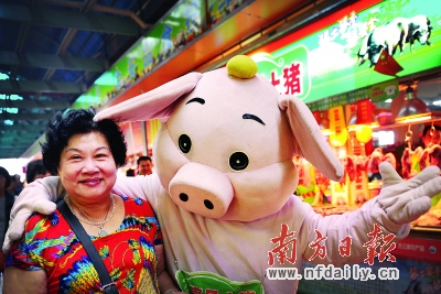 在档口进行促销活动时,杨柏成说要让顾客把欢乐带回家。(左图)