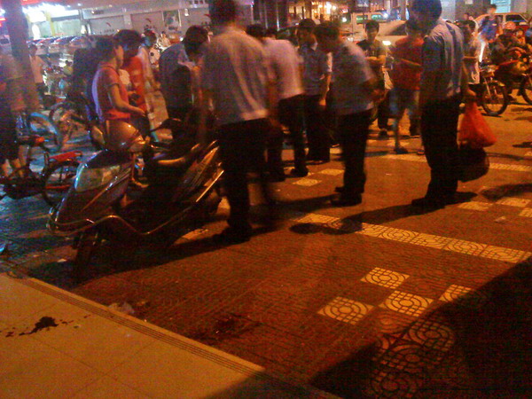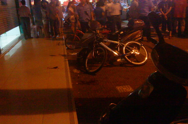 听闻是被群情凶涌的群众至伤头部,看了偷车疑犯又可恶又可怜,听闻还有同伙,现场有个黑布袋,疑是作案工具,而山地单车前后锁都给开了,锁在散落在山地单车旁