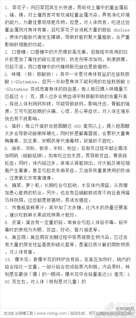 葵瓜子、味精、口香糖、猪肝、腌菜、皮蛋、臭豆腐、油条......都在黑名单上,童鞋,看来真要管住自己的嘴了。转