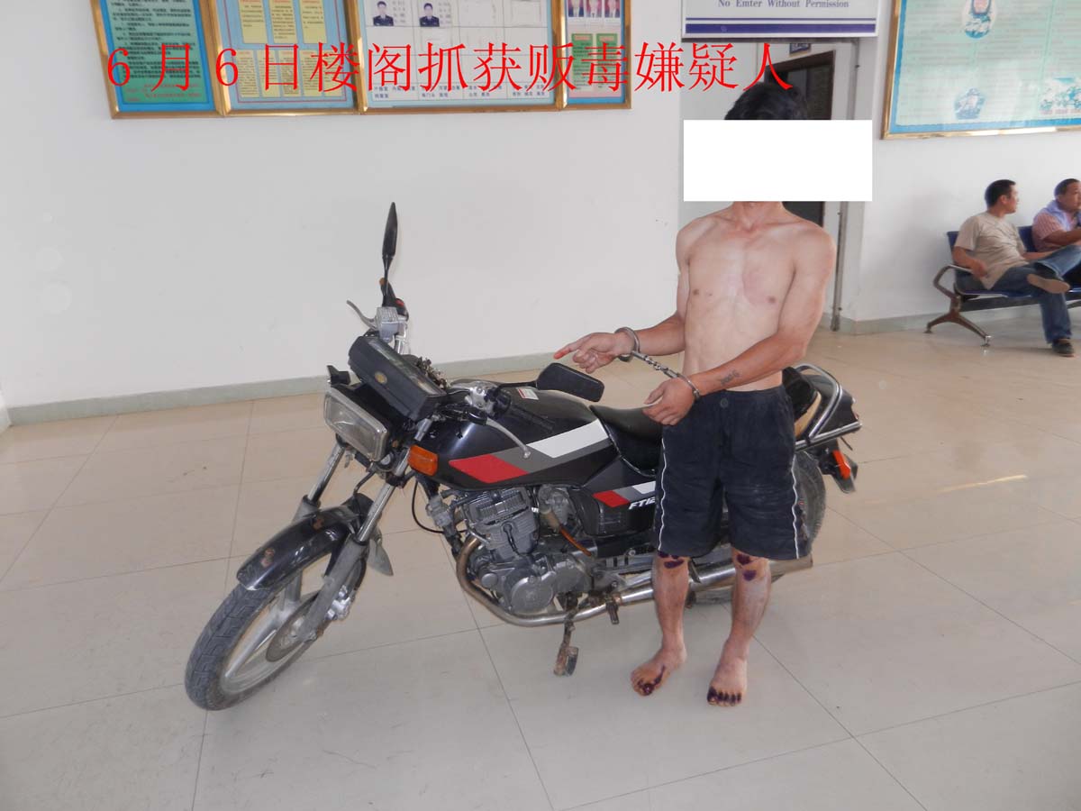 3,6日晚上9时许,电城派出所伏击组在电城楼阁村抓获一名正在出货的毒贩吴XX,并将其人赃俱获,当场缴获冰毒6.9克、麻果4.4克、作案摩托车一辆、手机一台。