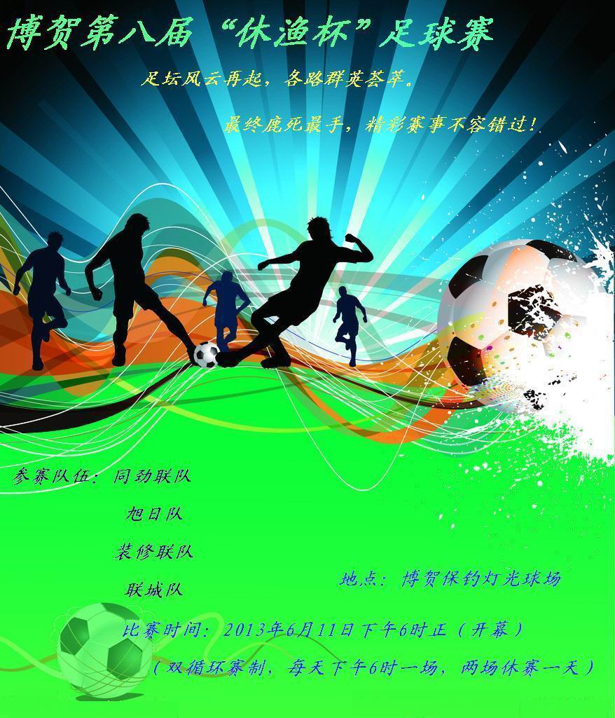 博 博贺水手 学前班 注册 2007-03-17 消息 49 反馈评分 0 点数 0 2013-06-09 #1 博贺第八届“休渔杯”足球赛,将于2013年6月11日起,在博贺保钓灯光球场举行,欢迎各路足球爱好者莅临指导交流。。。。 附件 海报.jpg 155.6 KB · 查看: 1,067