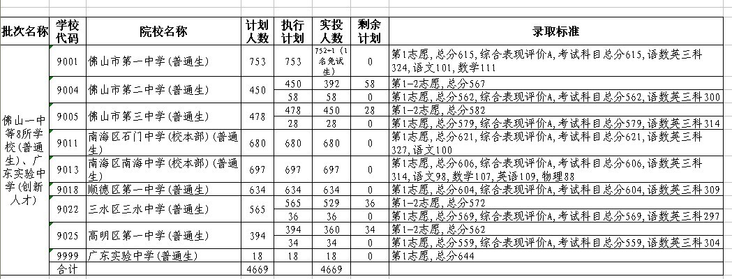 佛山重点高中招生名额