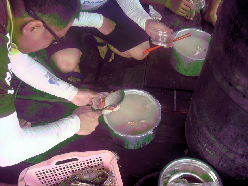 费用:(1)海鲜粥15元/人,由于渔排上炉具有限,海鲜粥只接受20人名额,按报名先到先得,没报上名的中餐自理即可。(其间需吃其它海鲜的可自理,低于市价;酒水饮料自备。中餐亦可自备或自理。);(2)搭船渡海费用5元/人。(也可选择其它路线返回,不搭船渡海没费用)。
