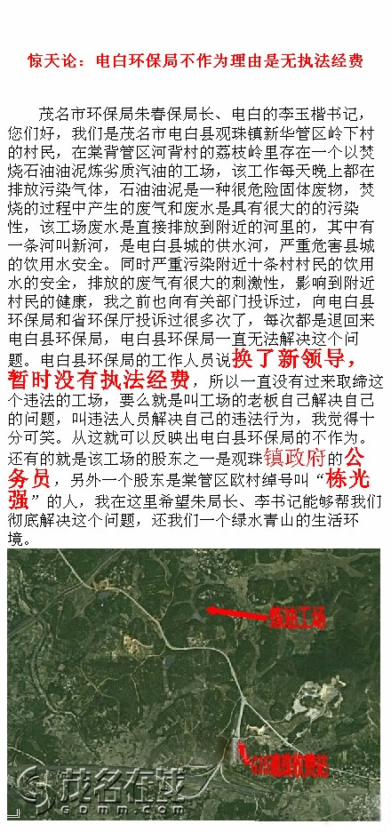 QUOTE(五味子 @ 2013年07月19日 Friday, 10:23 PM) 哪位热心网友组织一下,大家到环保局进行捐款,邀请各大媒体来对于电白人民对政府部门的那种鱼水情进行大力宣传和报导,号召全国人民向电白人民学习!然后像几十年前,全国都来电白进行学习取经那样,再现电白辉煌! [snapback]3566997[/snapback]