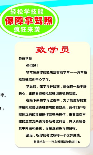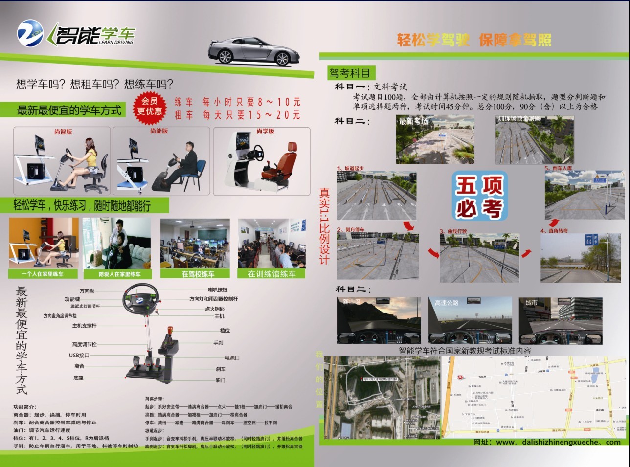 1. 很多学员尤其是白领工作繁忙,练习时间短,影响了学习效果,家庭驾驶模拟器是对他最好的帮助。
