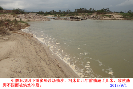 电白县马踏镇松塘管区的一条由1968年修建的172米长的引水石坝,由于石坝下游没多远就有抽沙场,河床变得越来越深,因为石坝是建在以前的河床上的,河床变深石坝支撑掏空,被09年510洪水冲崩,至今都未有修建,几千亩农田变荒。在七十年代时马踏松塘被称为电白粮食之仓,石坝崩溃后。这里人民群众生活十分紧张。请政府部门多多关照,并期望社会各界给予广泛关注、大力支持。