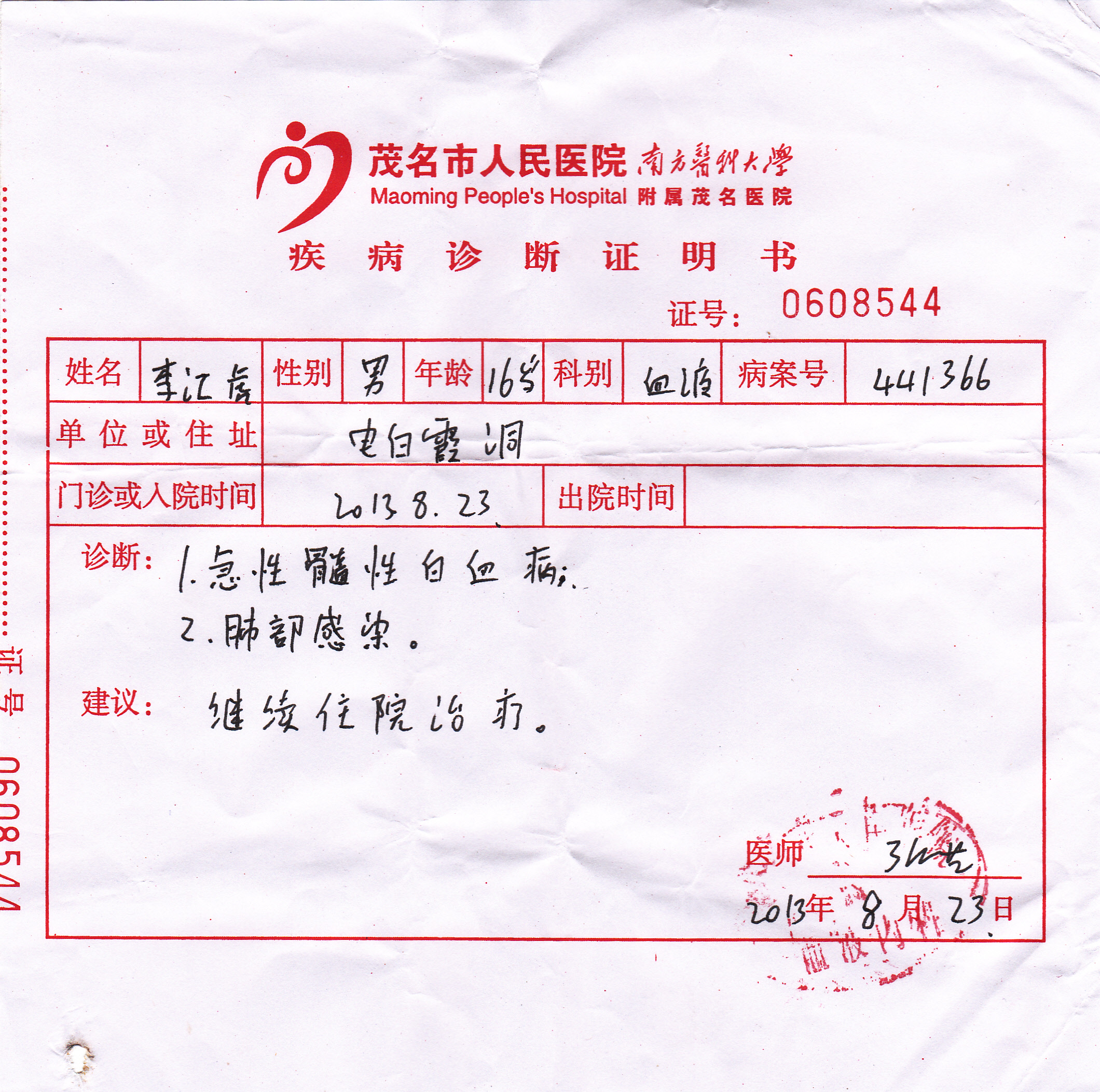 然而,李江虎,这个年方16的初三男生,他的生命之花即将凋零,因为,他遇上了可怜的白血病……