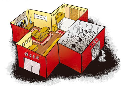 据监察部、人事部披露,全国党政部门有200万名各级干部长期请病假,其中有40万名干部长期占据了干部病房、干部招待所、度假村,一年开支约为500亿元。中国政府投入的医疗费用中,80%花在了850万以党政干部为主的群体身上。