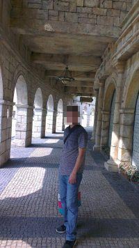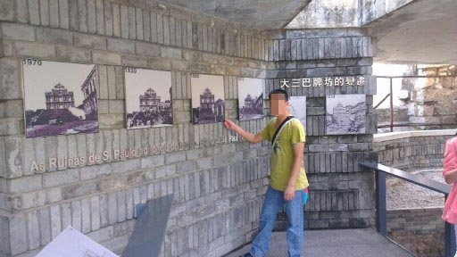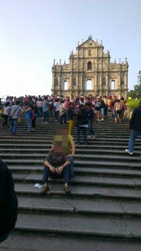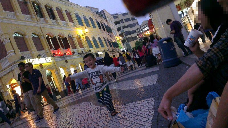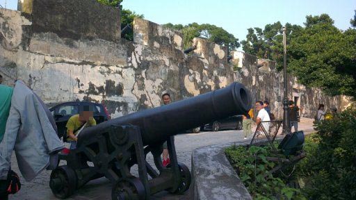 -走了很久到隔壁的酒店坐免费公交到市区---新马路--民政总署--手信街---大三巴---炮台---然后往回走到葡京和新葡京门前拍照(已经是晚上)---再走回新马路坐车回酒店---第一天结束(半天游玩)