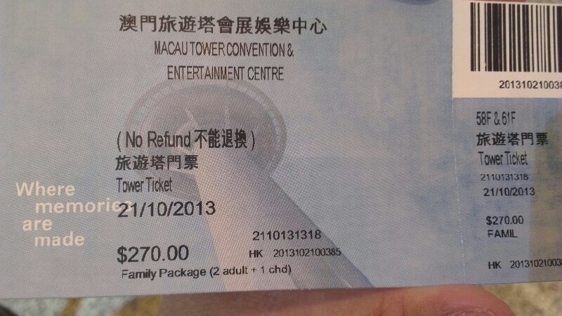 )--澳门观光塔(门票135成人,只是观光,蹦极和漫游更贵,不过也不敢玩