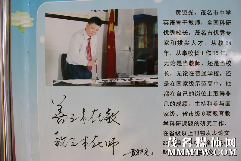 高州四中原是一所较为薄弱的城区中学,自2008年8月黄钜光担任高州市第四中学校长以来,短短四年时间,该校发生了翻天覆地的变化:校园面积增多了,置换了5亩多教育用地;兴建了一幢3000多平方米的学生饭堂、一幢10000多平方的教学大楼和600多平方的文笔堂综合楼,共14000平方米;师资力量由原来273位教职工增加到现在的450人,其中高级教师133人。今年选拔教师参加高州市中青年骨干教师教学基本功大赛入围决赛教师之多创学校历史新高,是同类学校之最;学校设备设施不断完善,办学层次不断提高,从原来薄弱的城区中学发展成为广东省普通高中教学水平优秀学校和广东省国家级示范性普通高中,是茂名地区同类学校第一所获此殊荣的学校。