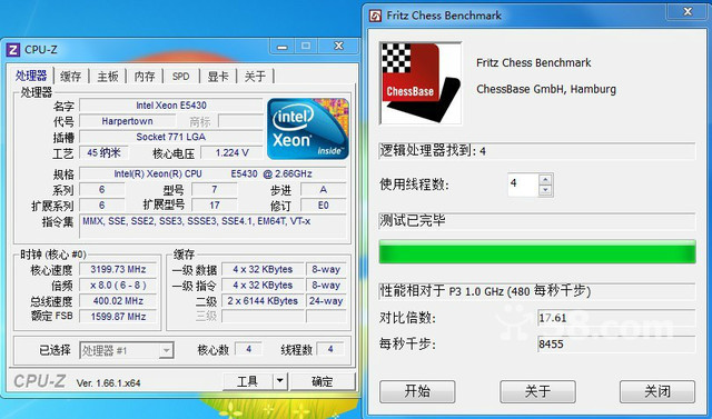 CPU:Intel 四核至强 XEON E5430 E0 主频2.6(OC3.2)