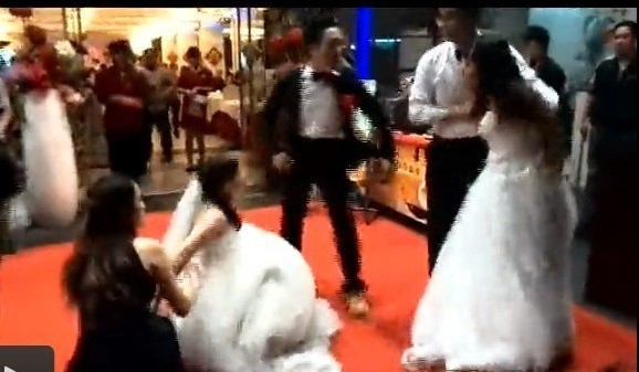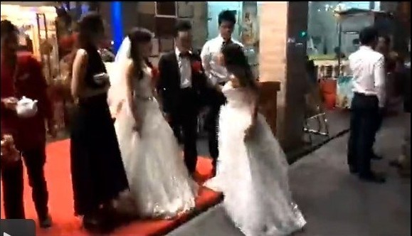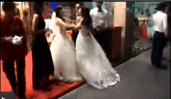 2两个“新娘”一见面就大打出手,嘴里不时还冒粗话