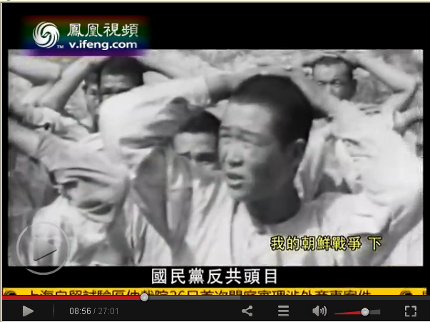 陈晓楠关于迫害志愿军战俘的解说结束,后面是迫害志愿军战俘的史料