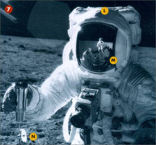 月球白天温度是130多度,这个相机裸露在外,胶卷(当时还没发明电子相机)早就烤熔,还照相?