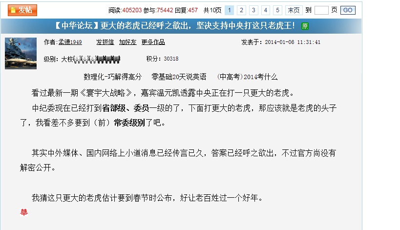 更大的老虎已经呼之欲出,坚决支持中央打这只老虎王! (2人在浏览)