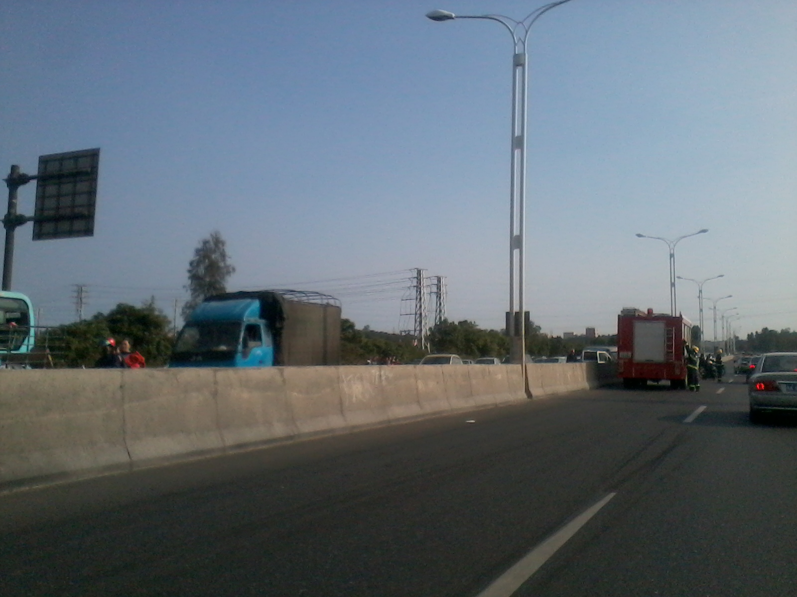 动用了消防车。 [attachmentid=322738] 消防队员在指挥交通。 [attachmentid=322739] 原来是一辆小面包车撞向隔离带,一伤员躺在担架上,看来该车祸比较严重,动用了消防队。 [attachmentid=322740]