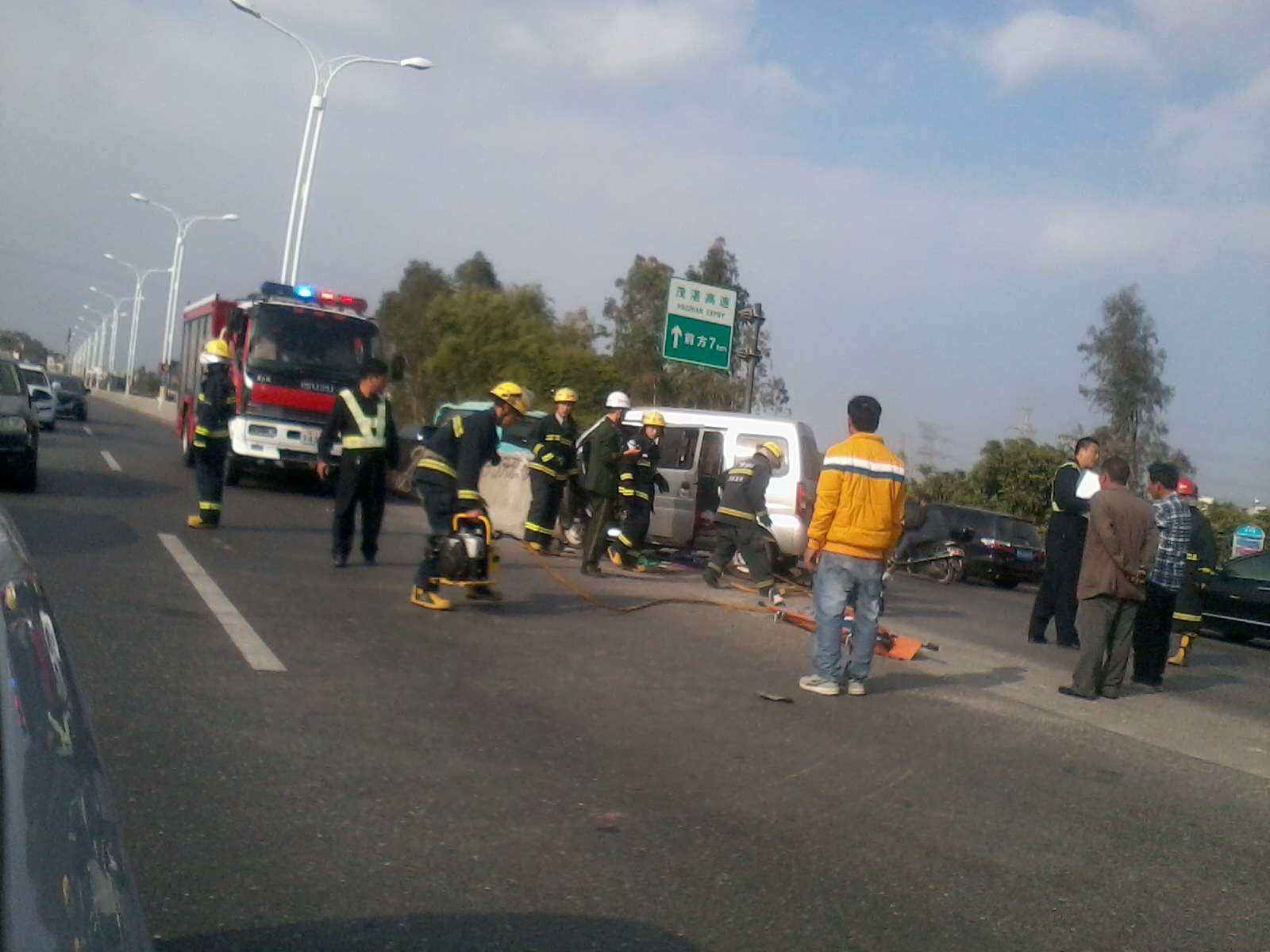 水 水东学生 荣誉主席 注册 2009-09-08 消息 5,456 反馈评分 6 点数 61 2014-02-02 #2 动用了消防车。 [attachmentid=322738] 消防队员在指挥交通。 [attachmentid=322739] 原来是一辆小面包车撞向隔离带,一伤员躺在担架上,看来该车祸比较严重,动用了消防队。 [attachmentid=322740] 附件 照片2280.jpg 538.2 KB · 查看: 278 照片2281.jpg 505.4 KB · 查看: 262 照片2282.jpg 559.3 KB · 查看: 305