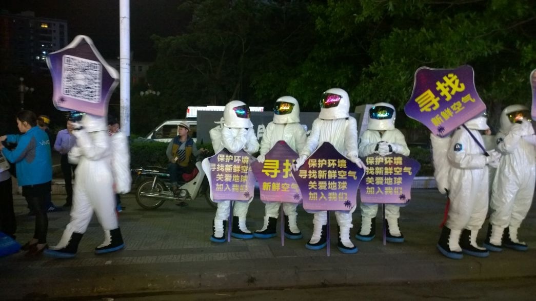 昨晚看到几个环保志愿者在东湖举牌抗议