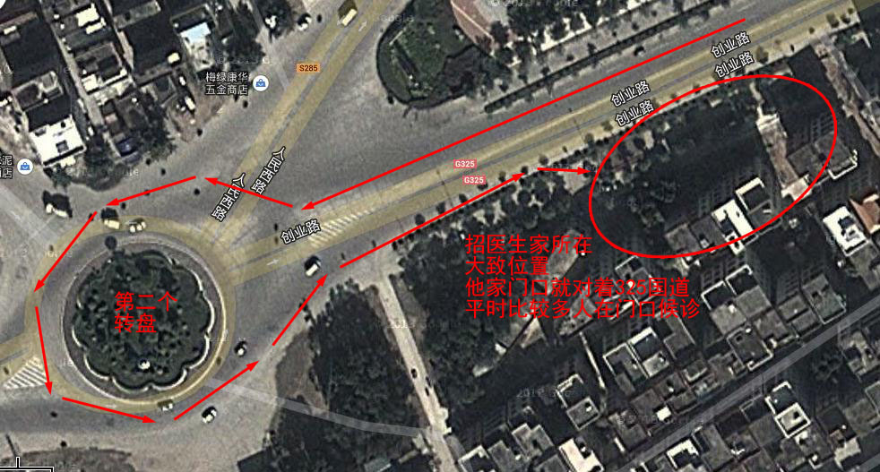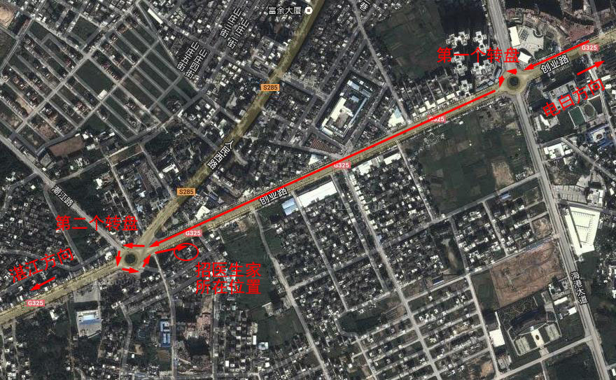 我忘记他家的具体地址和电话了。路经如下图:从水东沿325国道往湛江方向,在吴川市区路段有2个转盘,他家就在第二个转盘往回几十米的南侧路边,门口对着国道,平时比较多人在门口候诊。他治疗痛风和骨病比较有名气,你在附近问问应该很容易找到他家的。