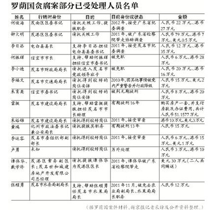 公开资料显示,罗荫国案发后,供出了100多位科级以上干部。“那段时间,茂名官场人人自危。”长期任职茂名的一位科级干部说。