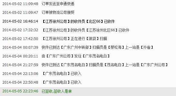 申通2天竟然就到电白了???而且还是从外省寄来??? 你对照下我哪个“顺丰”的贴子看看?? 以后我坚决只寄申通,目的就是因为速度太快了。竟然外省2天能到电白!! 若换作顺丰哪样的速度,估计要 10天。可能还不止。