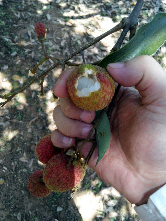 特别提醒:采摘荔枝时候一定要带把一把摘下来,不能一把只摘一颗或摘了一把荔枝只吃几颗即丢掉。请参与活动的你做一个有素质的人。