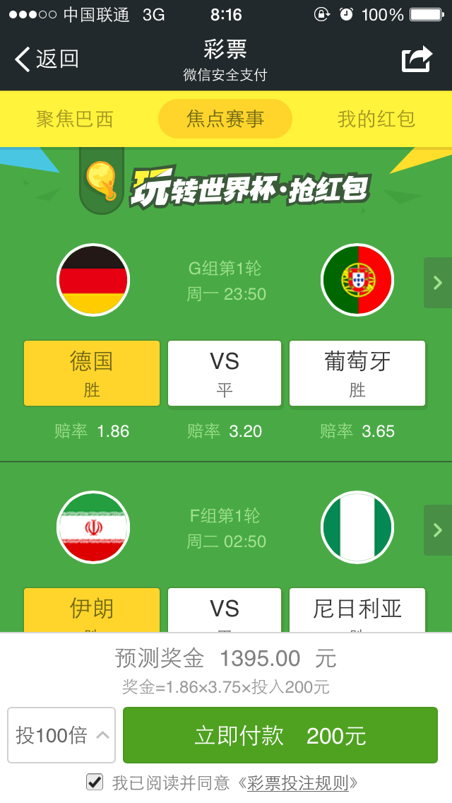 八,输清光,买了德国3:0,他竟然比我想像的还疯狂,打出了4:0