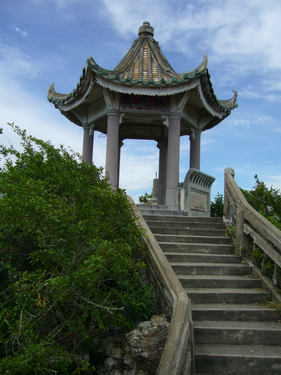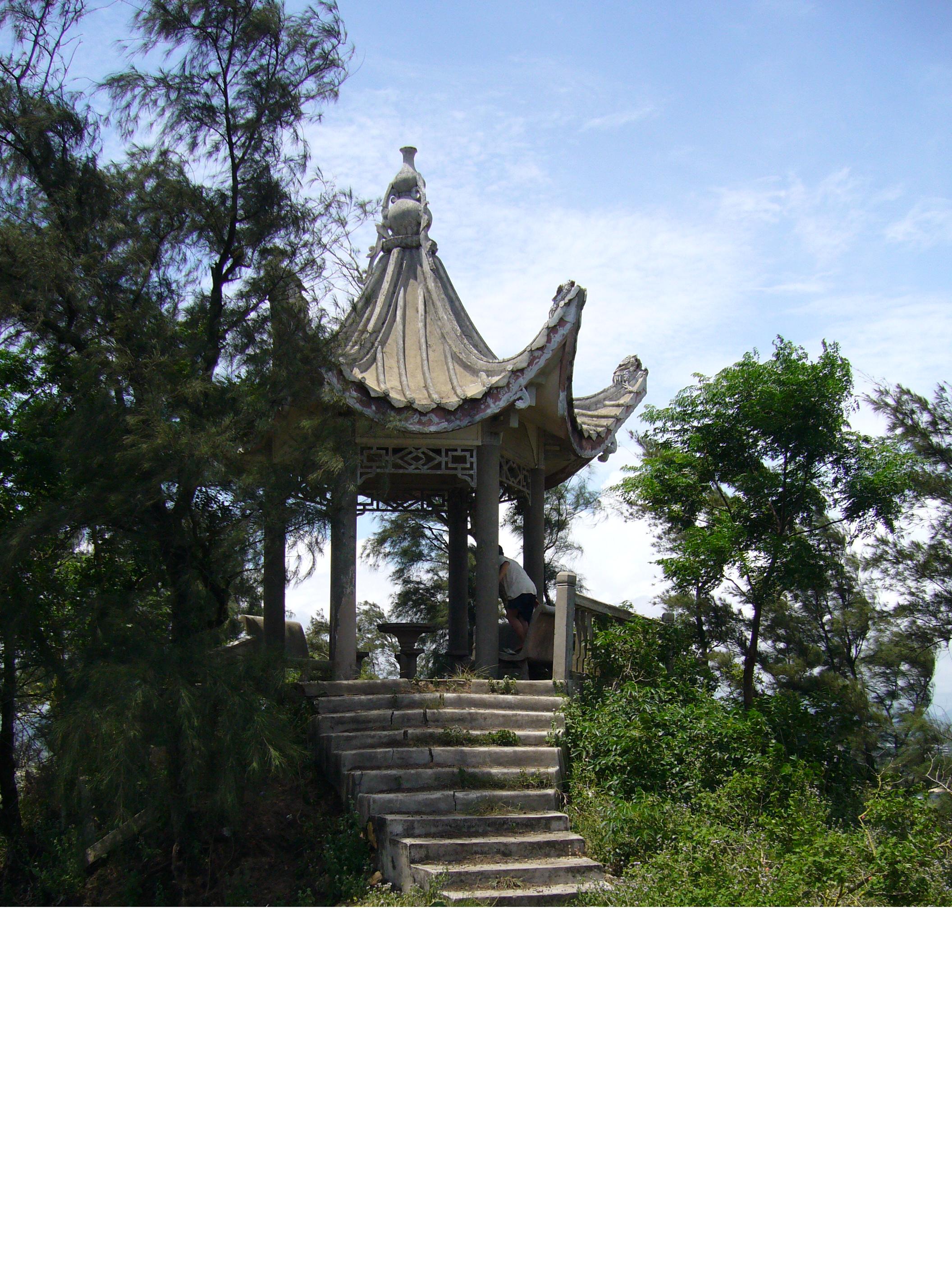 台阶对侧后面半山有刻字的,说是五几或六几年人工修的,字不大,不知是说山是人工还是亭子,说的山的可能性大,时间长了,记忆有点糊,有空去落实一下,83年小学的时候到那拾木麻黄仔上交给学校,那时沙是纯白的细沙啊。