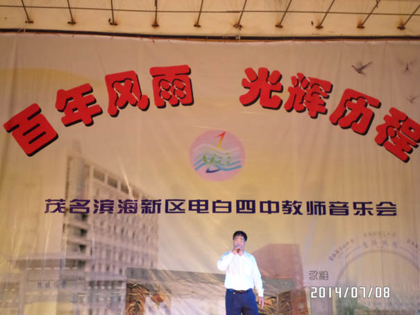 在茂名滨海新区管委会、电城镇政府大力支持下,经过全体教师辛苦努力,电白四中教师自我组织,自我策划的教师音乐晚会,在7月8日中午的雷霆鸣声预祝中,于晚上在电城镇人民公园文化广场成功演出,再现历史悠久、英才倍绲墓爬涎校深厚的文化底蕴,展现出四中人新时期的精神风貌,放飞着四中人美好的梦想!