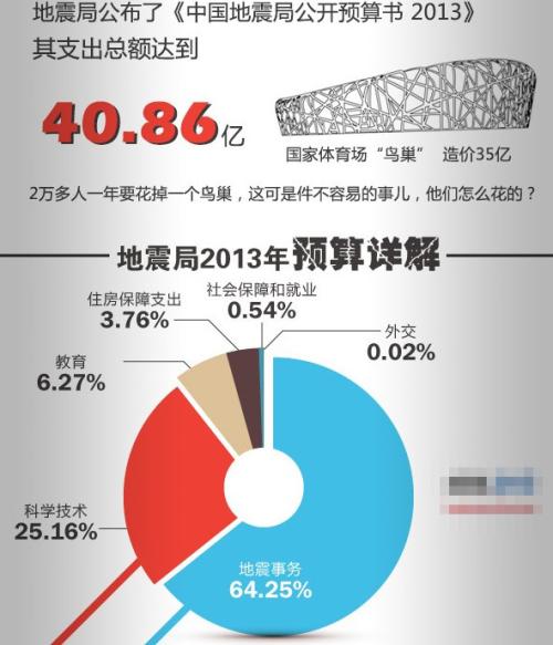 近日,网络上一张图片被热传,图片详细解释了国家地震局的2.3万名员工如何在一年之内花掉40亿预算。