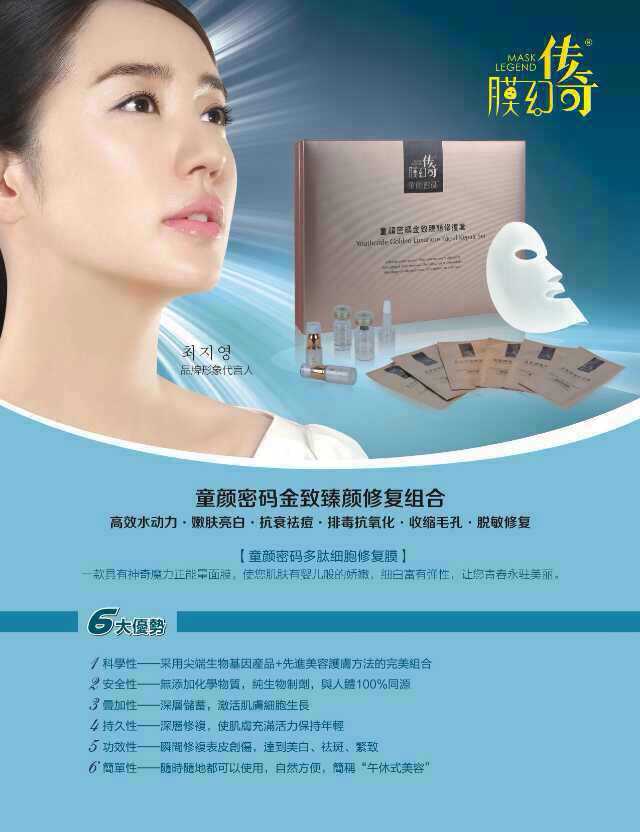 该款面膜采用尖端的工艺技术,从动植物萃取的多肽蛋白生物制剂,经由瑞士顶级实验室证实安全有效!更通过了广东产品质量监督检验研究院的检测,各项指标完全合格!膜幻传奇修复膜针对东方女性的肤质,添加了更适合亚洲女性皮肤的三胜肽/六胜肽混合EGF生长因子,能迅速改善肌肤的弹性,复活细胞,防止黑色素形成,美白肌肤。如果您也想拥有婴肌亮白般的不老童颜,唤回青春,那您还等什么呢?