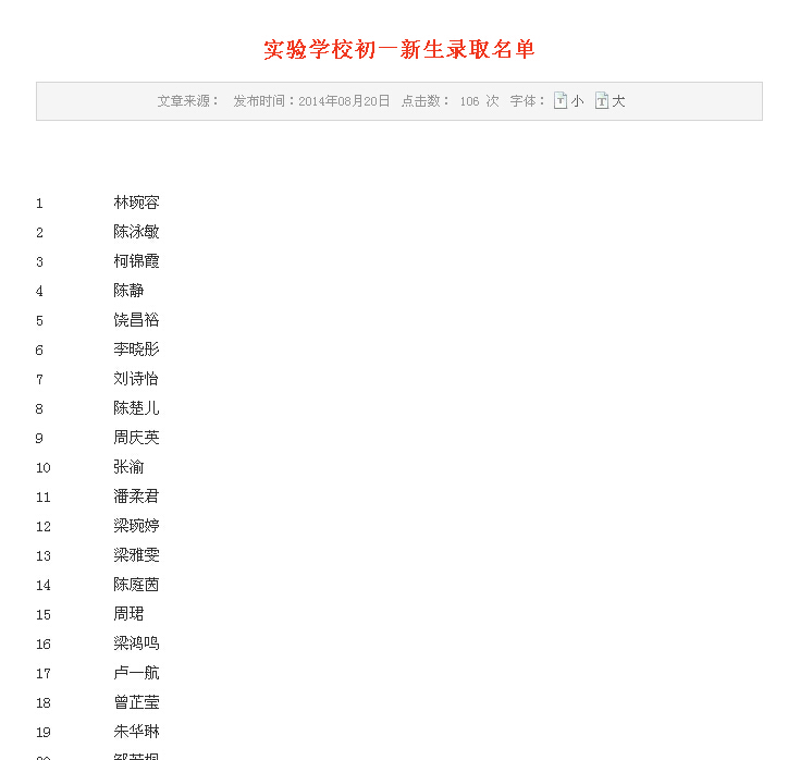 茂一实验学校初一新生录取名单