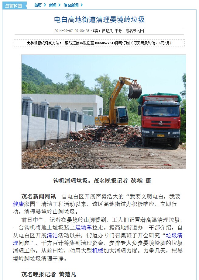 带来个好消息,茂名新闻网报道开始清理晏镜岭垃圾黑点!