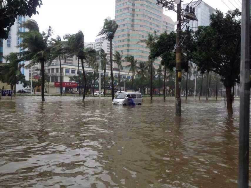 海口现在还处于台风的中心。