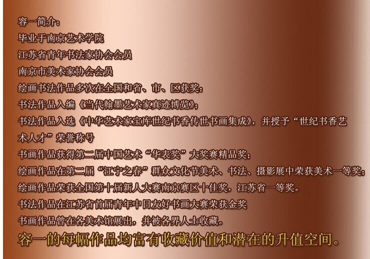 镇小干部 博士后 注册 2011-10-25 帖子 1,565 反馈评分 0 点数 61 2014-09-23 #40 实话说,现在书法能够上百元的作者,应当在省以上都有名气的才配。许多收获过大奖的,省级协会的书法家,都没有过百的润格。