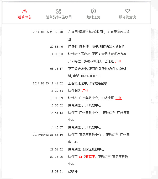 2014-10-25 20:22:00在官网"运单资料&签收图", 可查看签收人信息