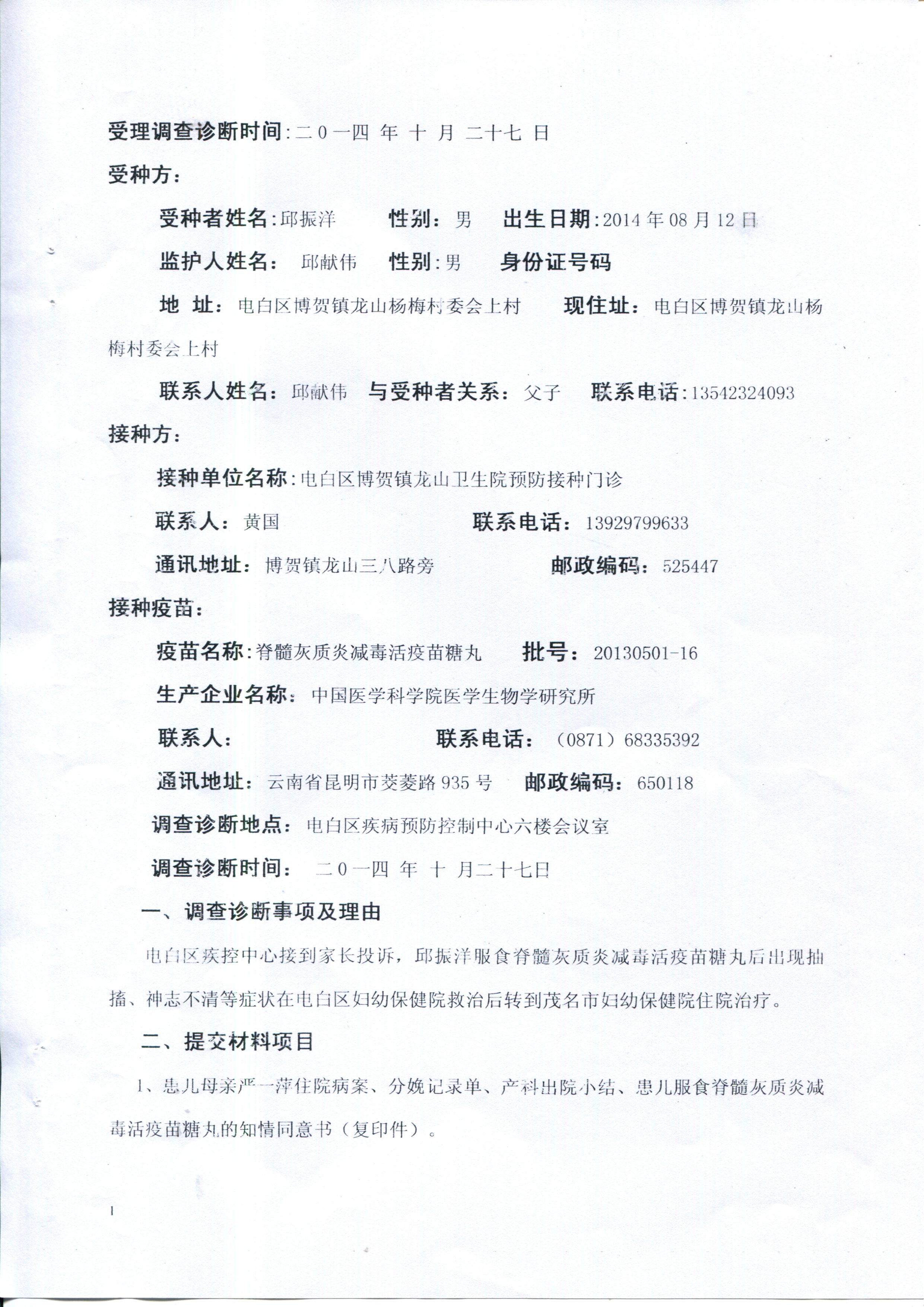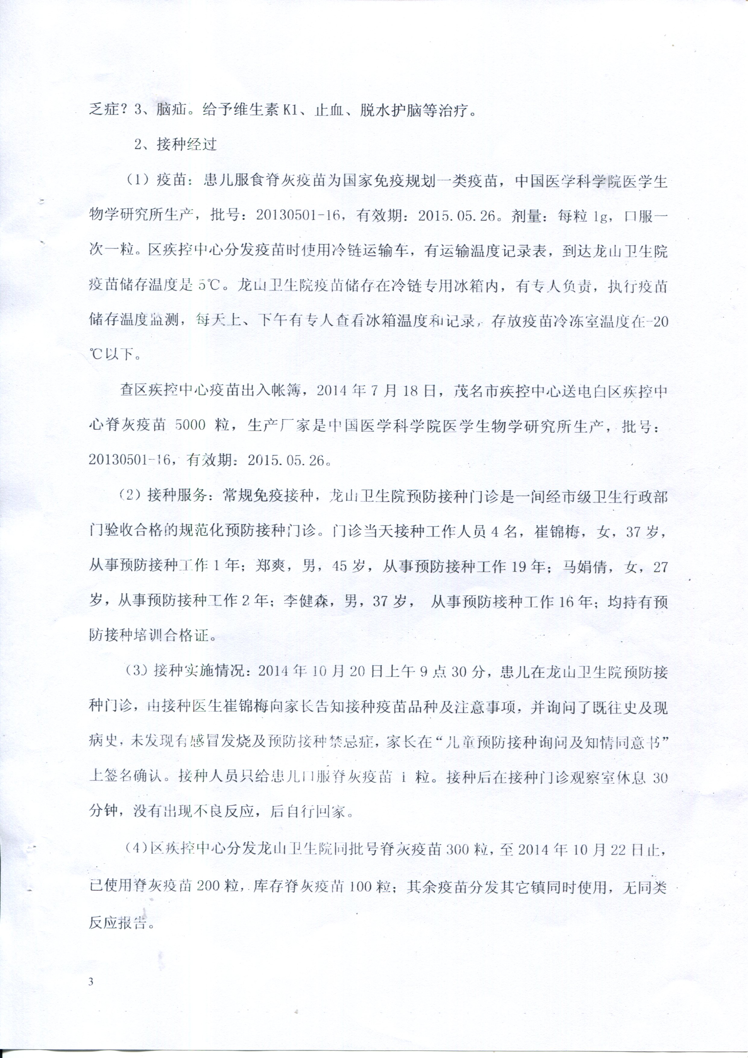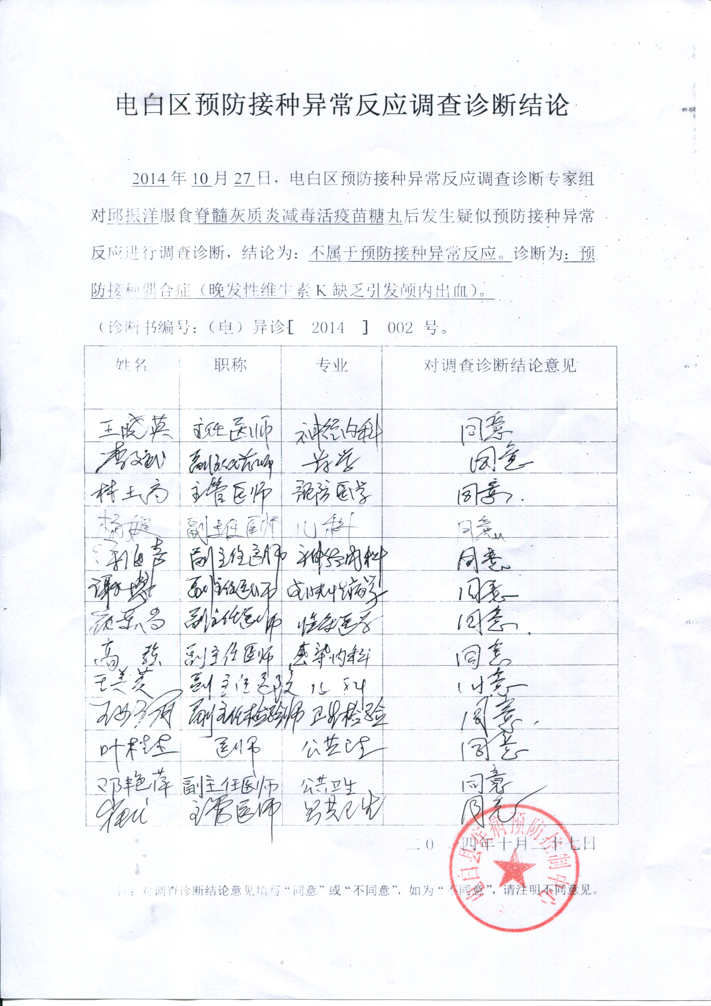 蜡 蜡笔小昕 幼儿园 注册 2008-10-11 消息 11 反馈评分 0 点数 0 2014-10-28 #5 QUOTE(蜡笔小昕 @ 2014年10月28日 Tuesday, 04:10 PM) 关于邱振洋(贴中吃糖丸小孩)事件的回应 邱振洋事件经电白县疾病预防控制中心鉴定,受种者邱振洋服食的脊灰疫苗合格,患者颅内出血是迟发型维生素K1缺乏引起,属于预防接种偶合症,与服食脊灰疫苗无关,请广大网民勿信谣言。现附上电白区预防接种异常反应调查诊断结论、电白区预防接种异常反应调查诊断书、一例疑似预防接种偶合反应病例的调查报告。附件如下:[attachmentid=334098][attachmentid=334099] [snapback]3711533[/snapback] [attachmentid=334100][attachmentid=334101] 附件 调查报告3.jpg 1.3 MB · 查看: 510 调查报告4.jpg 1.1 MB · 查看: 518