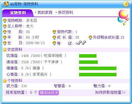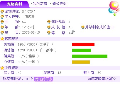 QUOTE(..}菟」 @ 2005年06月15日 Wednesday, 11:42 PM) 在说我吗`???可是`升级要钱的吗???初了电费 [snapback]420804[/snapback] 不是说你 好象升级钱也没用的 也是要挂的 但是不能像挂Q那样一直放在那里不理 如果这样的话宠物分分钟都可能死掉 钱的话就可以升那些武力,智慧和魅力