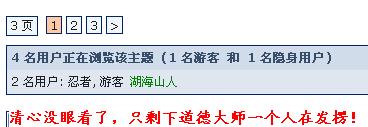 You have chosen to ignore 初悟人生. View this post ・ Un-ignore 初悟人生 如果不是用手机退出登陆还看不到老先生的话。 真不知道怎么说你这老家伙,还发了这么多图以证明我的罪状,你很闲? 很闲就去练下太极拳,要不就坐下来念几句咒让东湖清净下。 不过,这玩意儿玩多老家伙更容易出事。 退休后闲无聊,不如到树上找个马蜂窝来戳戳。 再回复你一句: 我自顶一个帖,和你自顶一片帖是一样的吗?