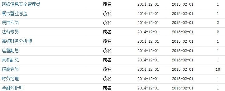 现招聘如下职位: