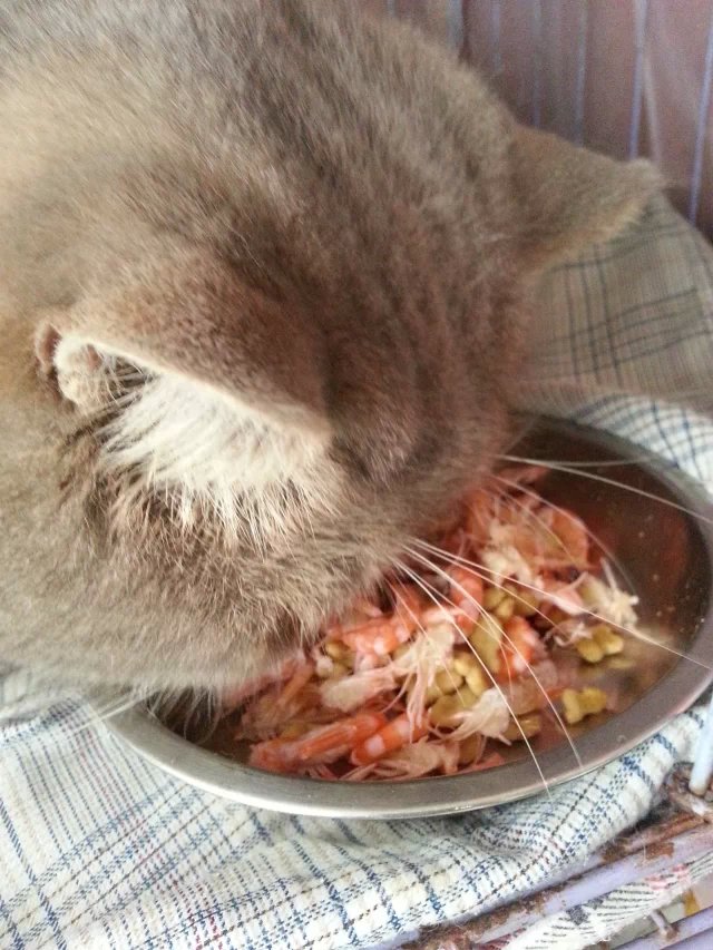 我家的猫猫吃虾