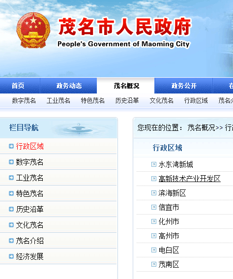 茂名市究竟有几个市辖区啊?那些是国务院批准同意的辖区?行政区,功能区和开发区的地域怎么划分?国务院批准划分给电白区的地域有多大啊?