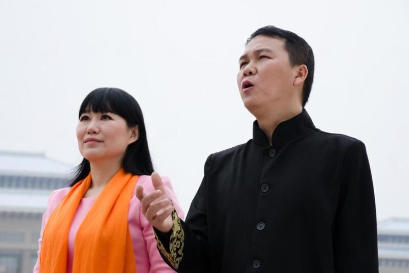 022― 01谢拓(右)表演、朗诵作品《山与海的呼唤》