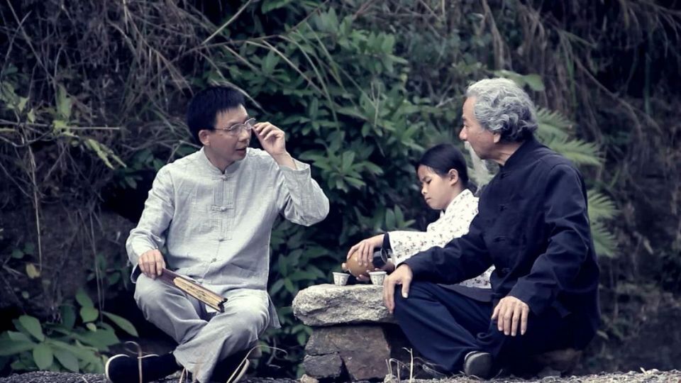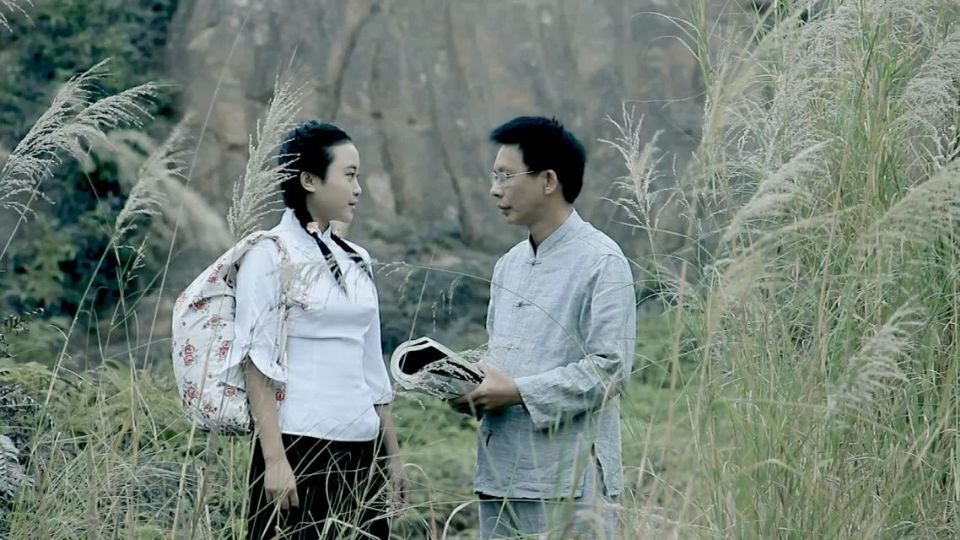 上图为谭育平表演作品微电影《师徒论诗》剧照