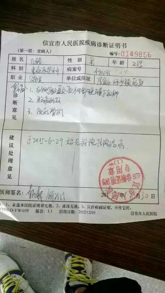 后来,送往信宜市人民医院检查发现丘铭头骨破裂造成严重脑出血,经过五个多小时的手术抢救,现在已转入ICU病房(还没有脱离危险期,至今昏迷)。