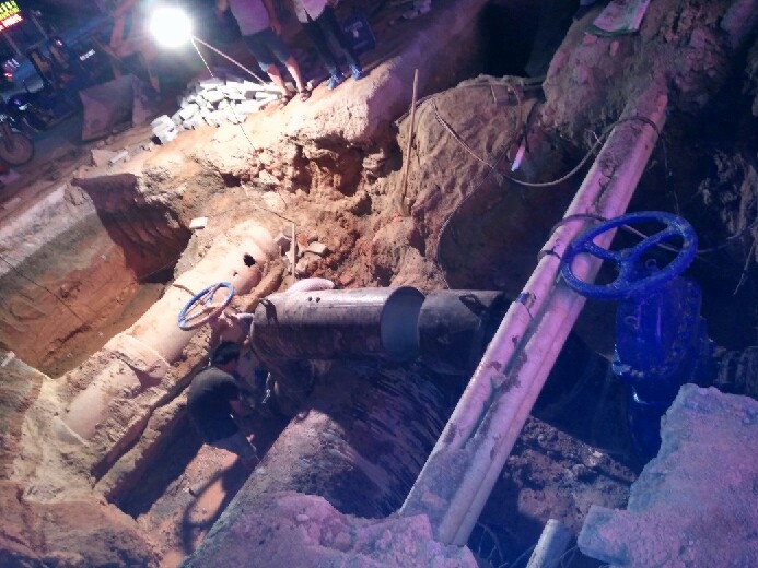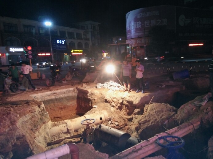 为尽快恢复暂受三路两湖影响的居民用水,白来水公司正在不遗余力连夜抢修管道(如图)。敬请受影响的居民多多谅解一时的不方便,工程完成后,我们将拥有更美丽的家园。