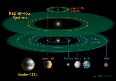 去年和今年年初美国宇航局也曾公布过类似“最接近另一个地球”的消息,但那些系外行星围绕运行的恒星都是质量很小,温度也比较低的红矮星,而这次Kepler-452b围绕运行的是一颗与太阳相似的恒星,所以成为到目前为止最接近“另一个地球”的系外行星。