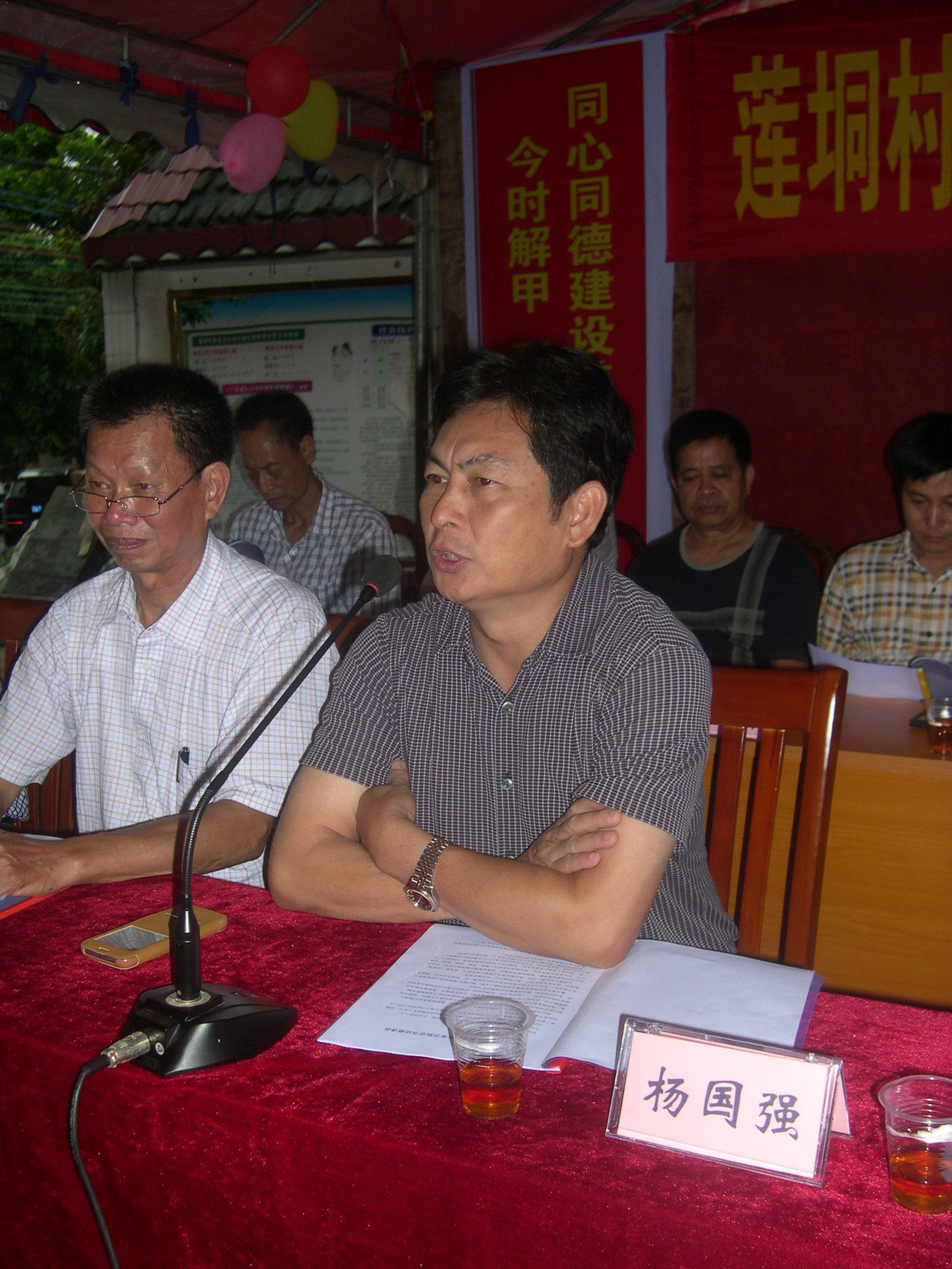 乡贤广东宝能石化科技有限公司老总杨国强先生讲话。杨总在讲话中说:这样的活动很好,以后要每年搞一次,如果缺乏举办经费,他当全力支持。筹办本次活动,就得到杨总的鼎力支持,赞助经费10000元。