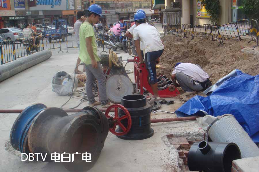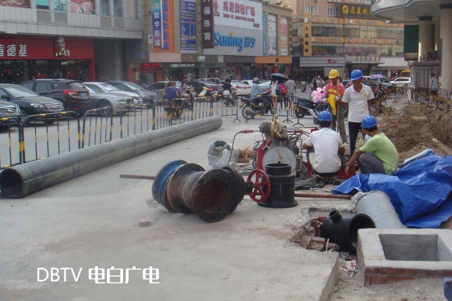 在人民路中心台路段,小编看到自来水公司的工作人员在安装自来水管,人民路一带的居民用水肯定会受到影响。